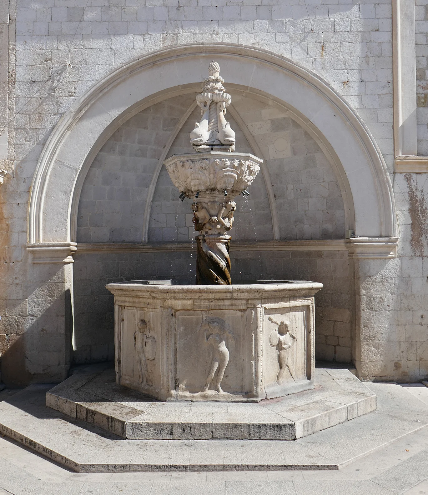 This is Onofrio’s Little Fountain (Mala Onofrijea Fontana) built in 1442. The purpose of the small fountain was to supply the market on the Luza square with water.