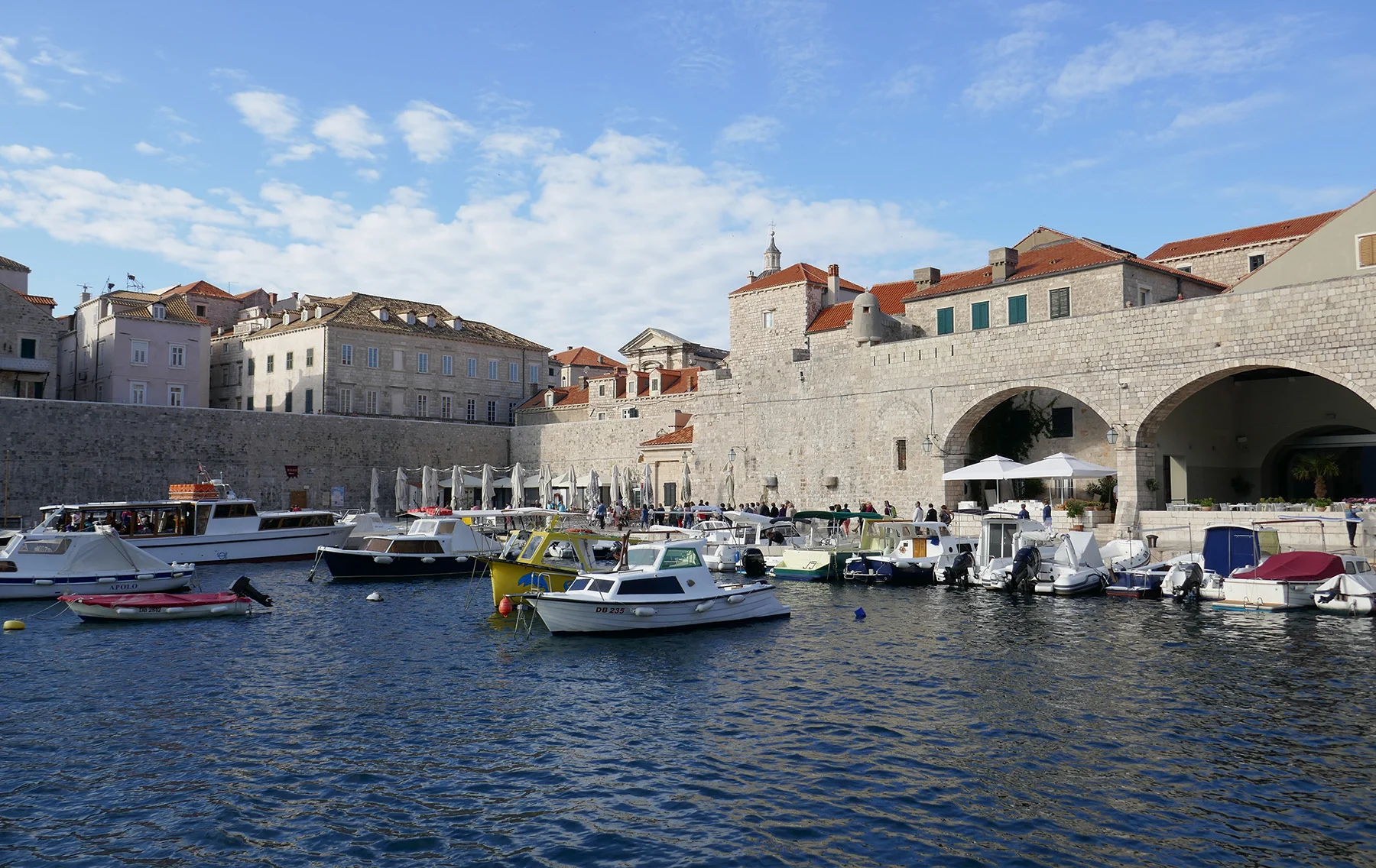 On the corner is an information office so we go in and ask where to catch the bus. The woman points to the side of the building and tells us no ticket is needed - you pay on the bus. We need more information so we go to a bus that is out there and the driver tells us that this is not the bus to Dubrovnik. There is a bus office so we go in and learn that they come very half hour and it will say Dubrovnik on the front (why couldn’t the lady in the TI office tell us that?). We find a table outside along the harbor with a view of the busses and order a rum and coke. When you order a drink you are given just the alcohol in the glass with ice - you have to order the mixer separately. She asks us if we want one coke or two. We order one to share and make our drink. No sooner do we take a sip and our bus shows up. It’s sunny with a nice harbor view so we decide to take the next bus. Why rush.