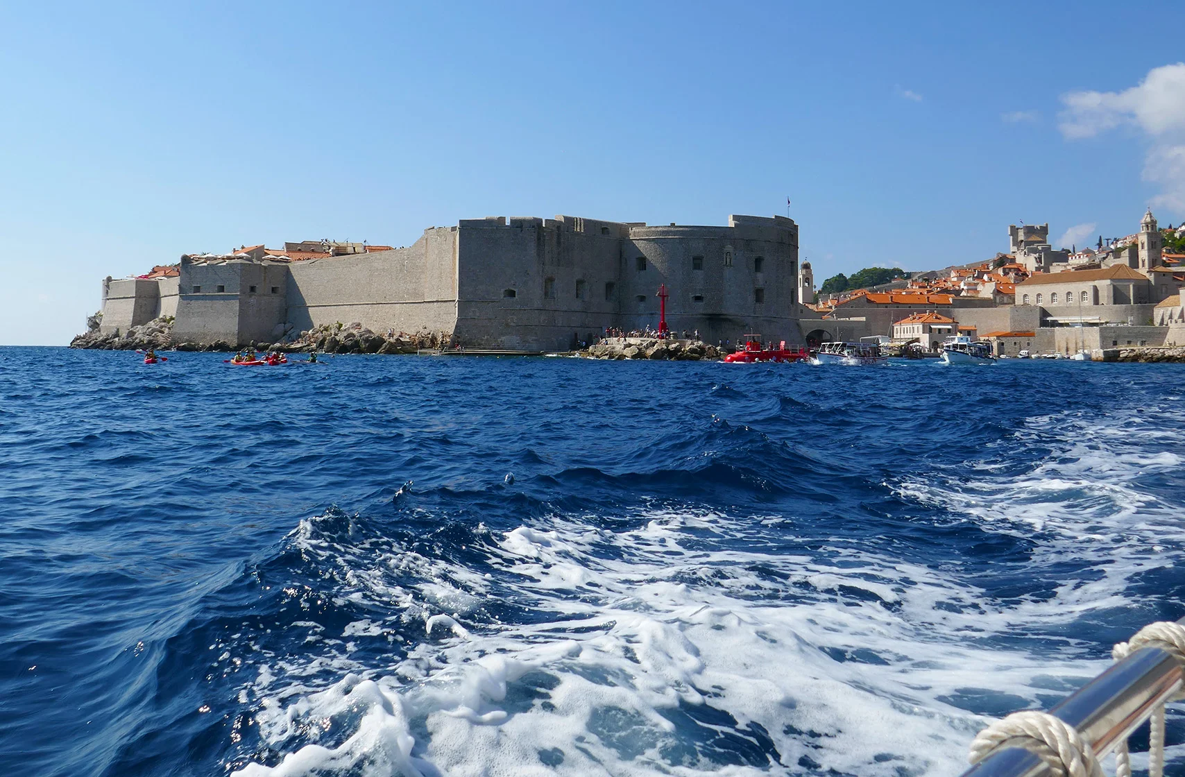 The weather is perfect and the open air ferry is a nice way to travel. The seas are not rough so the ride is pretty smooth. This is a nice perspective of the Old Town.